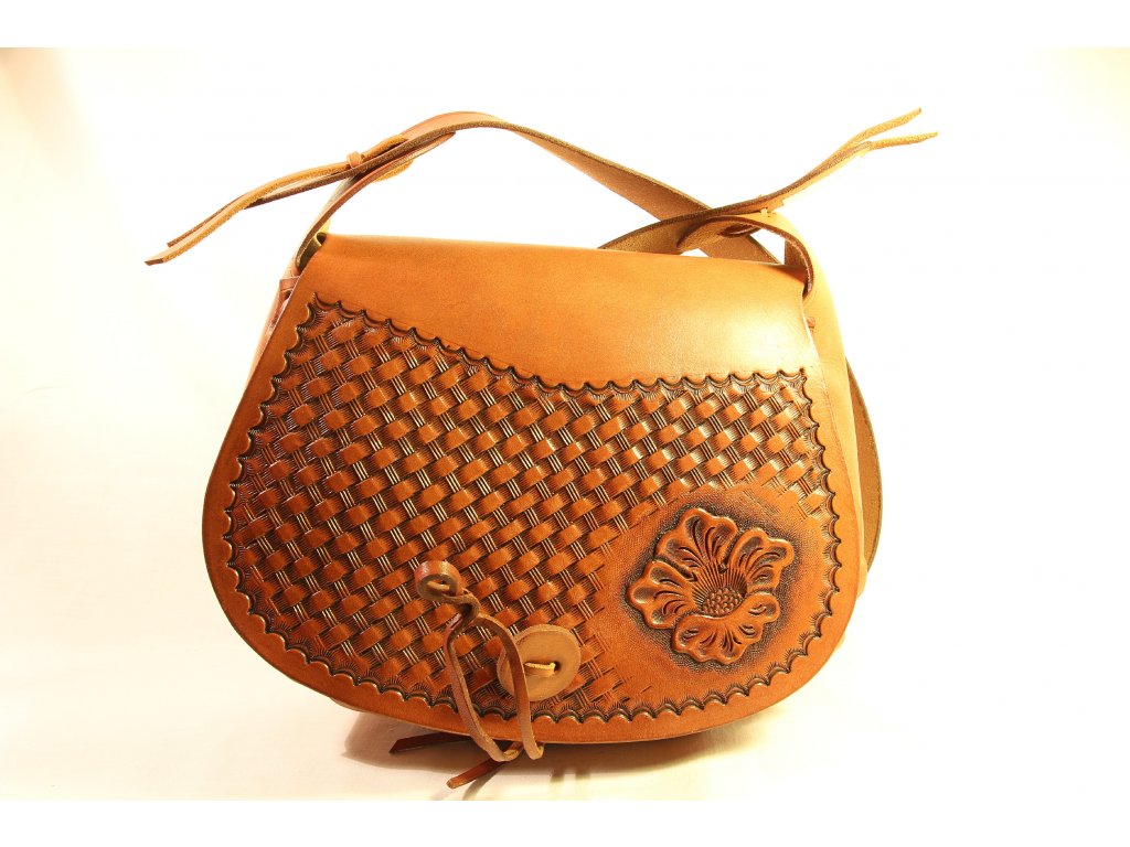 KOŽENÁ LOVECKÁ BRAŠNA ZDOBENÁ DEKOR STRUKTURA/HOŘEC - Cihelka - ruční práce