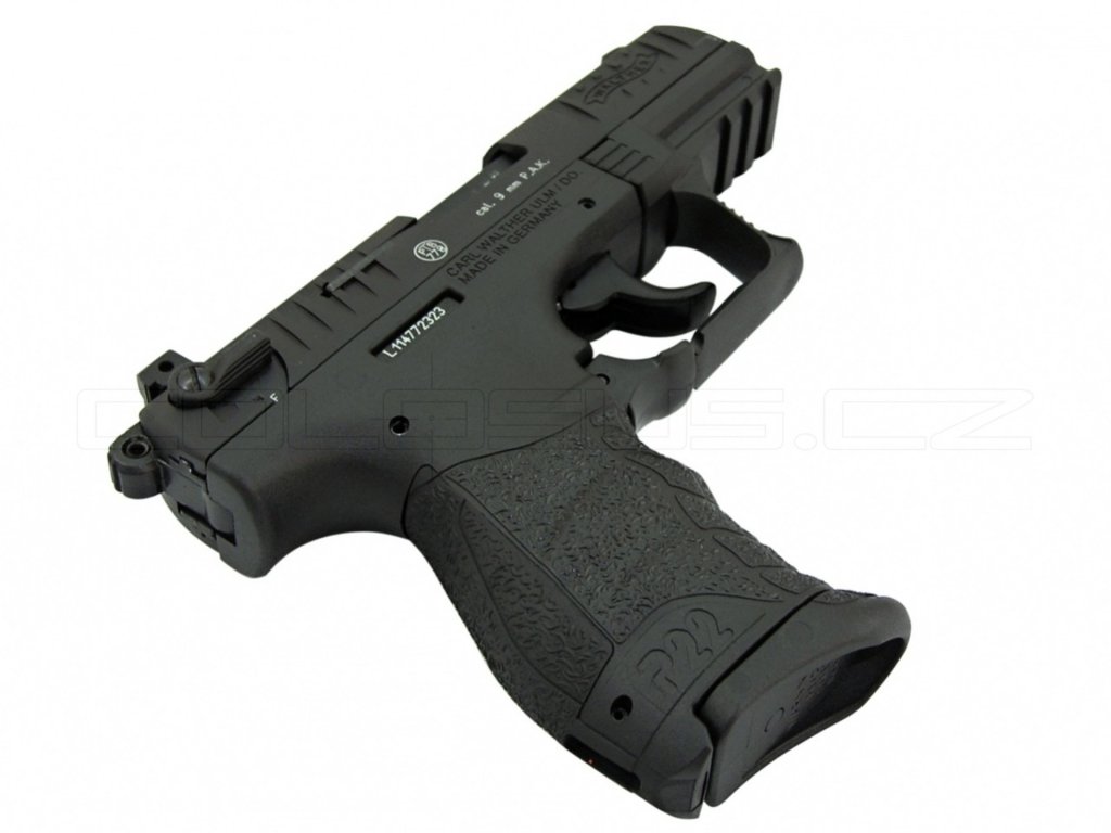 Jedinečná, 100% věrná replika inovovaného modelu P22Q firmy Walther. Od ostrého provedení se liší jen hlavní, která je opatřena přepážkou z tvrdokovu.