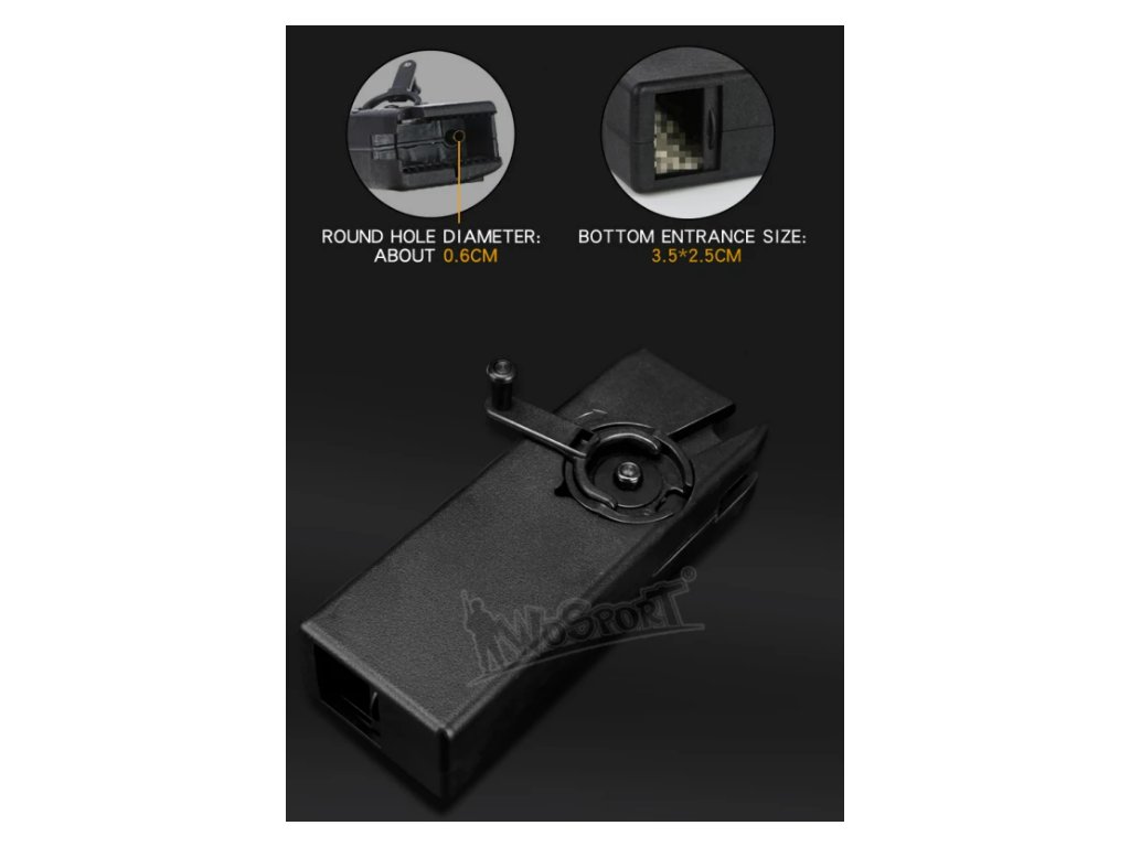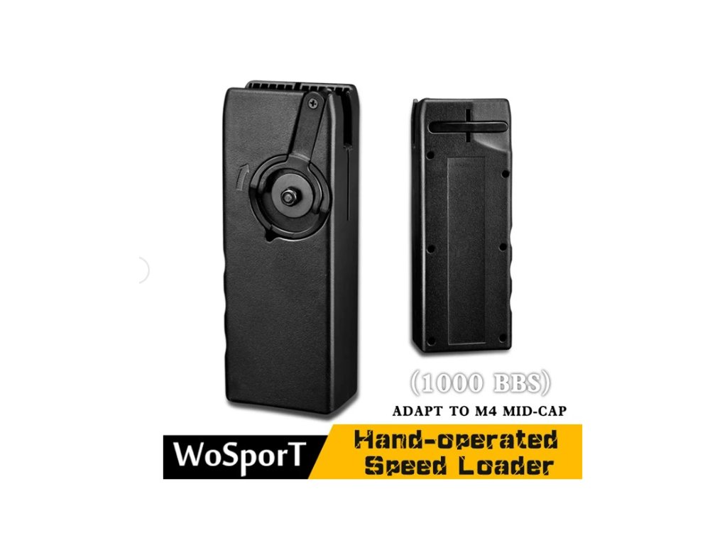 Rychloládovačka Lever od firmy WoSport je nezbytnou součástí výbavy každého hráče airsoftu. Rychlým otáčením klikou lze téměř každý tlačný zásobník M4/16 velmi rychle naplnit.