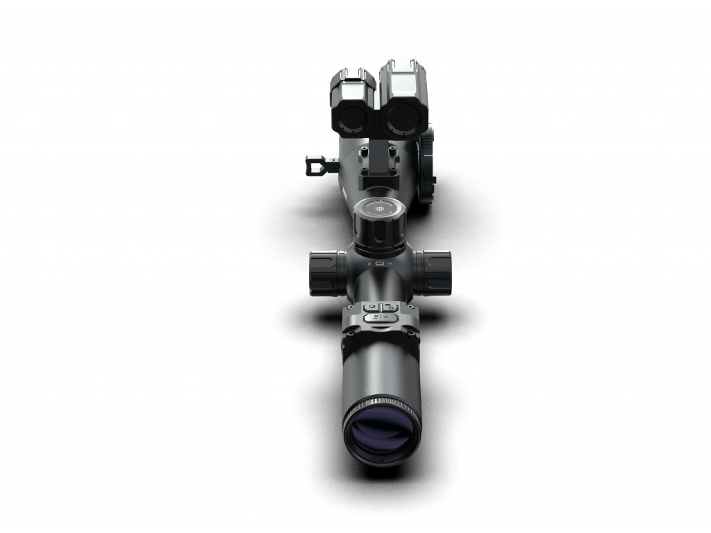 Laserový dálkoměr a balistický kalkulátor: Integrovaný balistický kalkulátor ve spojení s laserovým dálkoměrem na 1000 m automaticky vypočítá trajektorii střely a zobrazí bod dopadu na displeji přístroje. Tato pokročilá technologie výrazně pomůže při přesnosti zásahu.